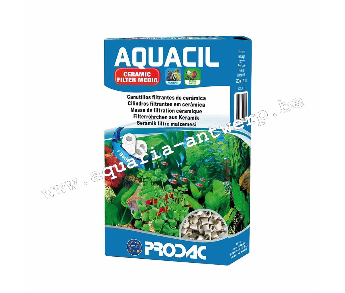Ceramic cylinder media for filtering fresh and saltwater aquariums. AQUACIL has a dual function: mechanical filtering as it traps coarse impurities carried by the water (leaves, excess food, excrement), biological filtering thanks to its porous characteristic which offers a large surface area to help promote bacteria development which then break down the organic substances.